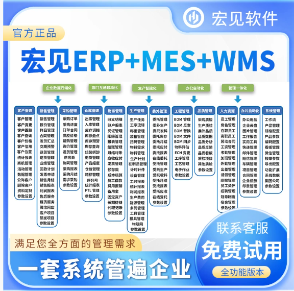 宏见是一款ERP+CRM+HR+OA+EMS+财务系统+设备联网+智能仓储的综合性软件,赋能创造未来。系统整合企业资源与生产执行,覆盖进销存、仓储管理、财务、生产、人力资源全链条。精准管理、高效协同,云端部署,随时随地访问,灵活定制满足个性化需求。一体化管理,提升效率,降低成本,加快企业数字化转型,引领智造新时代。