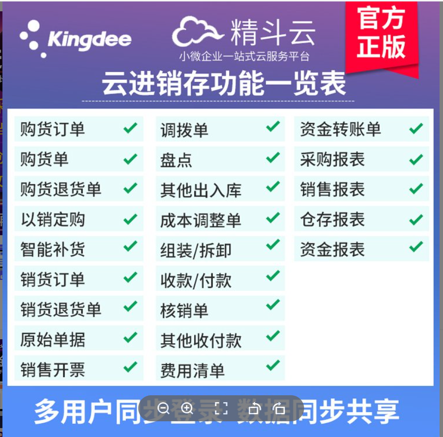 首页 > 办公软件 > 正文 金蝶云进销存系统 办公软件> 财务软件 8个月前 (08-11) 浏览 1602 价格:¥698.00 金蝶 云进销存系统可以做到安全可靠,随时随地开单查看数据。可异地登录,不受电脑限制,支持手机操作,手机开单,查看数据。可以帮助企业实现销售/采购开单、库存盘点、资金管理、进销存数据报表分析。 联系电话:18580201150 夏先生 - END - 进销存管理采购系统 xia - 0人点赞 - 0 收藏 0 点赞 0 评论 上一篇 采购盘点系统 下一篇 固定资产管理系统 相关推荐 管家婆物联宝手机进销存财务软件 8个月前 (08-11)